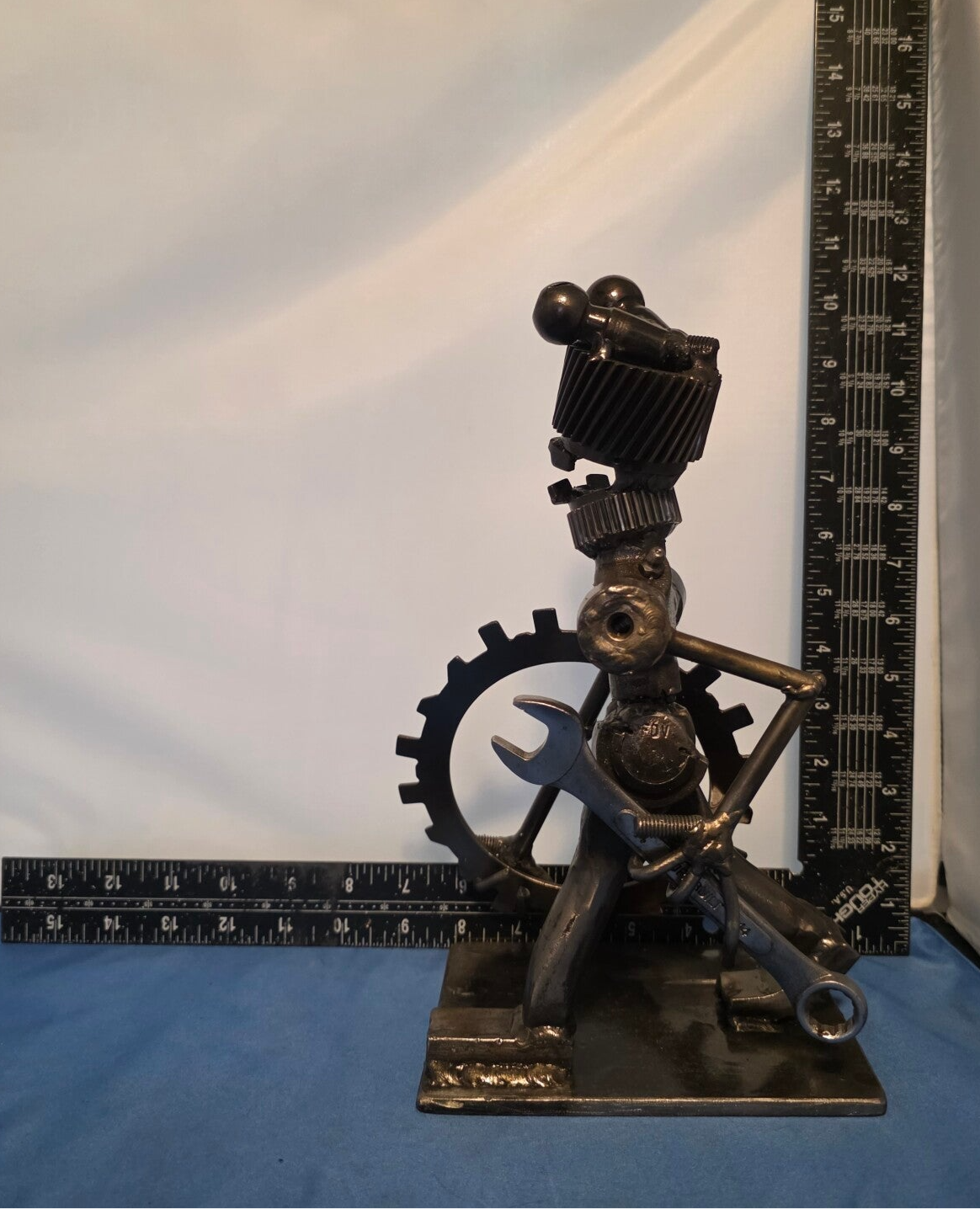 Ever had a tool vanish right before your eyes? That "it was just right here" feeling is universal to anyone with a workshop. We're here to confirm your suspicions: it wasn't you; it was the Shop Goblin! This unique sculpture is our artistic take on the mischievous sprite responsible for borrowing your parts and moving your tools. Standing at approximately 11 ½ inches tall, 5 inches wide, and with a confident 6 ¼-inch stride, he’s the perfect companion for any gearhead, shop junkie, or art enthusiast. Crafted for durability, the piece is finished with a double coat of clear enamel for years of lasting protection and is initialed by the artist. Get him for your shop today—but don't look away for a second, or he'll disappear with that pesky 10mm socket!